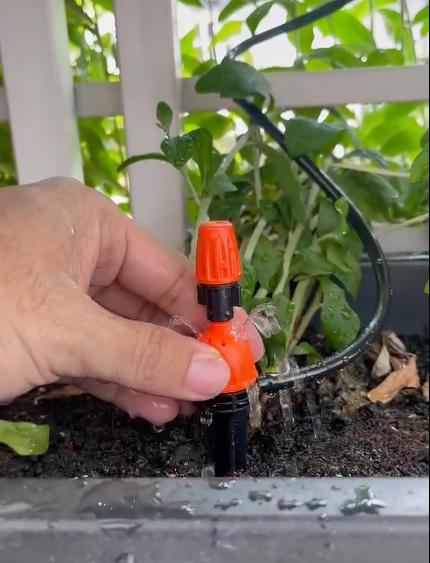 - Đầu nhỏ giọt điều chỉnh lưu lượng cho từng chậu, giúp cây nhận đúng lượng nước cần thiết.